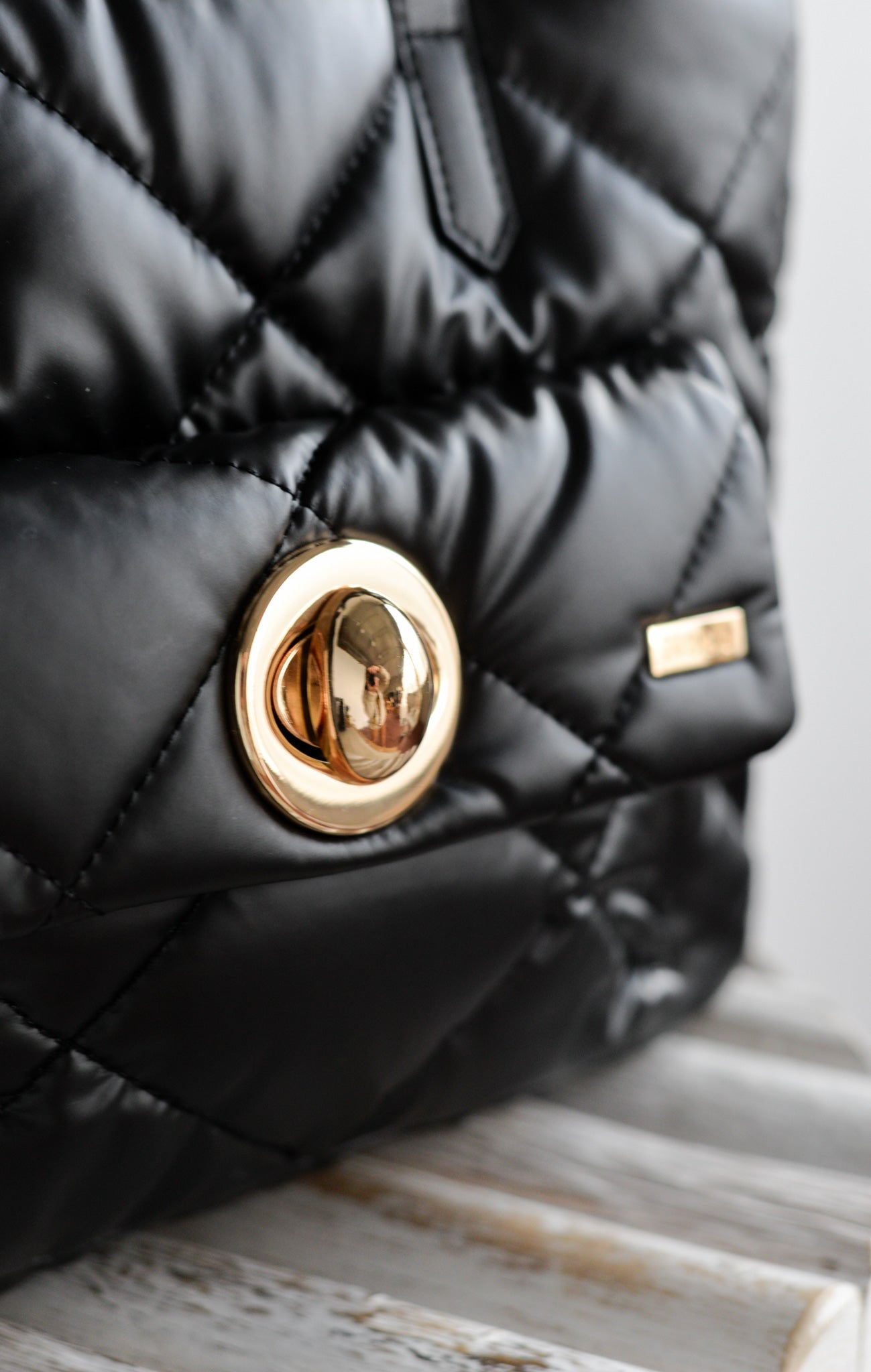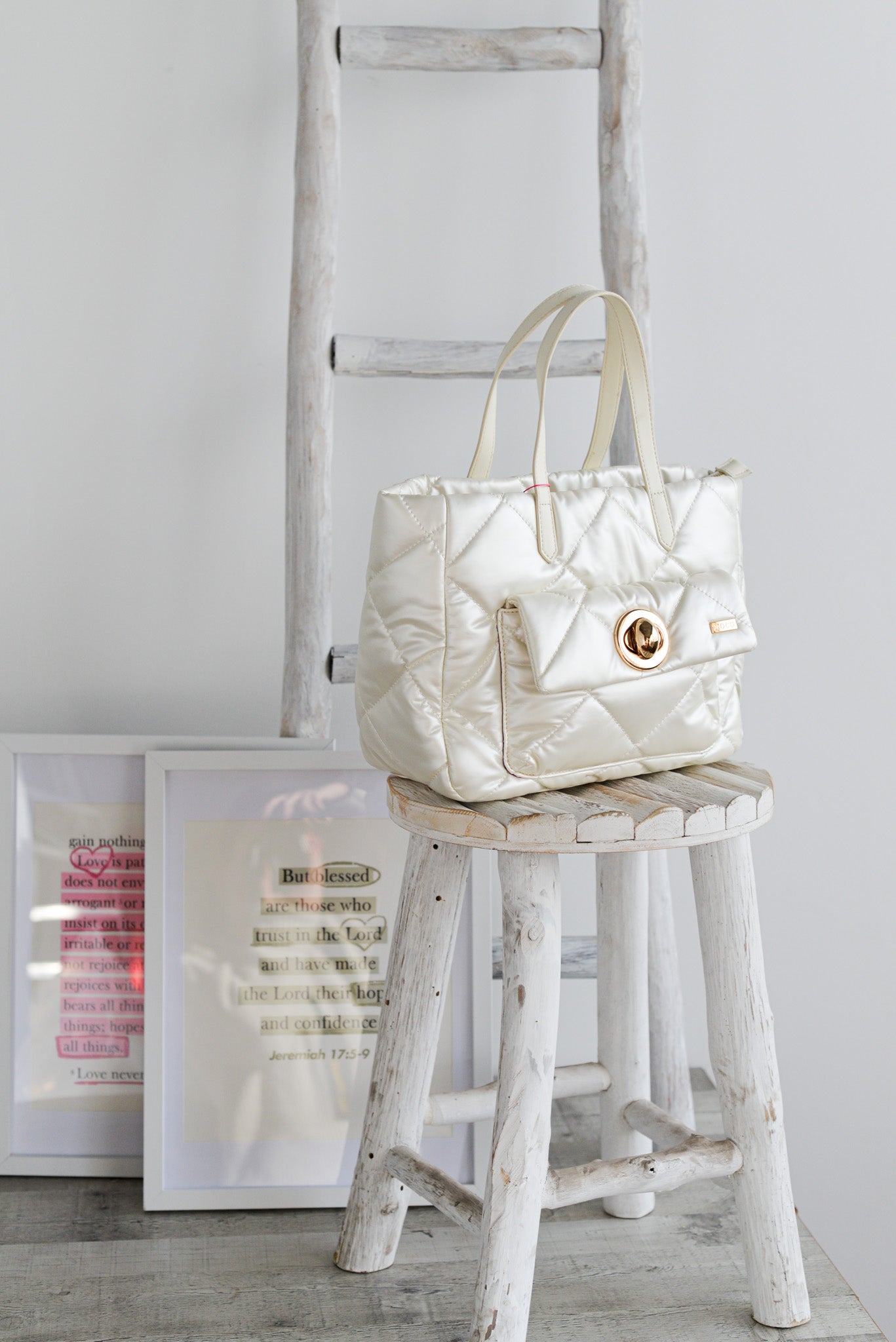 Borsa quadrata in materiale tecnico trapuntato tipo piuma