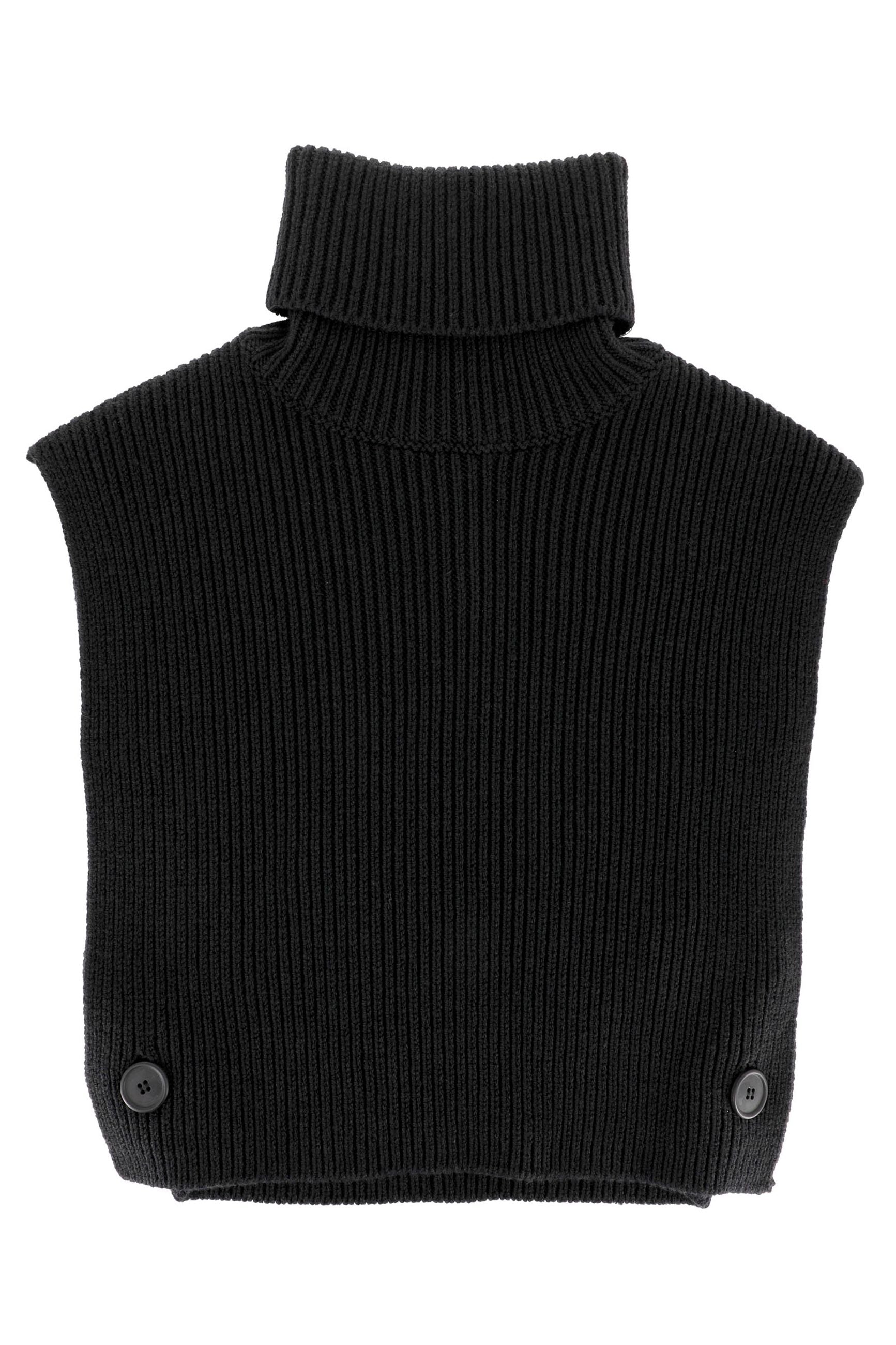 Scaldacollo, dolcevita, in morbida maglia di misto viscosa. Bottoni laterali sul fondo.