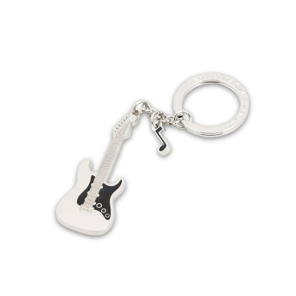 Portachiavi in metallo a forma di chitarra, perfetto per gli amanti della musica. Elegante e resistente, aggiunge un tocco di stile ispirato al rock alle tue chiavi o alla tua borsa. Un accessorio unico e originale, ideale anche come regalo per musicisti e appassionati di chitarra.
