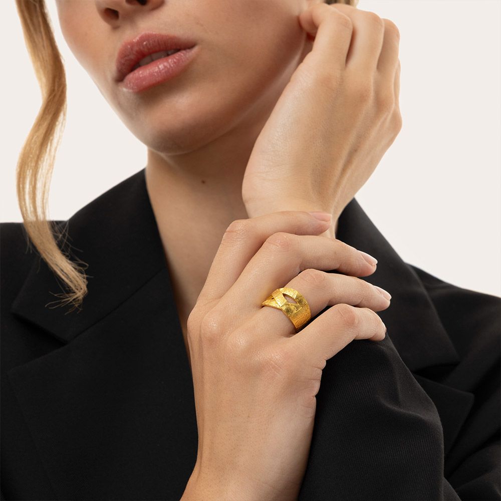 Design intrecciato dal fascino scultoreo, questo anello in ottone riciclato avvolge il dito con un gioco di pieni e vuoti che cattura la luce a ogni movimento. Regolabile e leggero, è un gioiello artigianale che aggiunge carattere a ogni look casual o elegante. Nickel tested. Lavorazione artigianale. Gioielli fatti a mano, unici e artigianali, perfetti per tutti i tuoi look o come idea regalo.