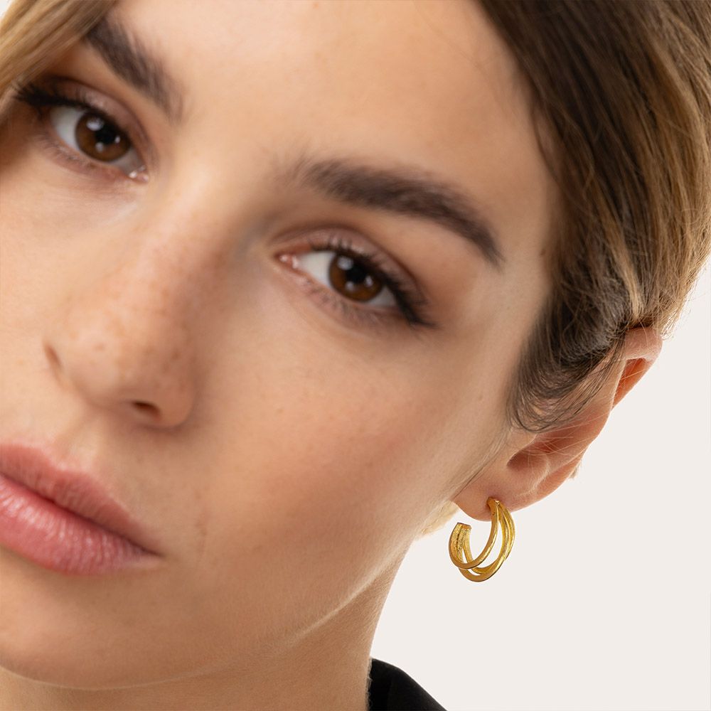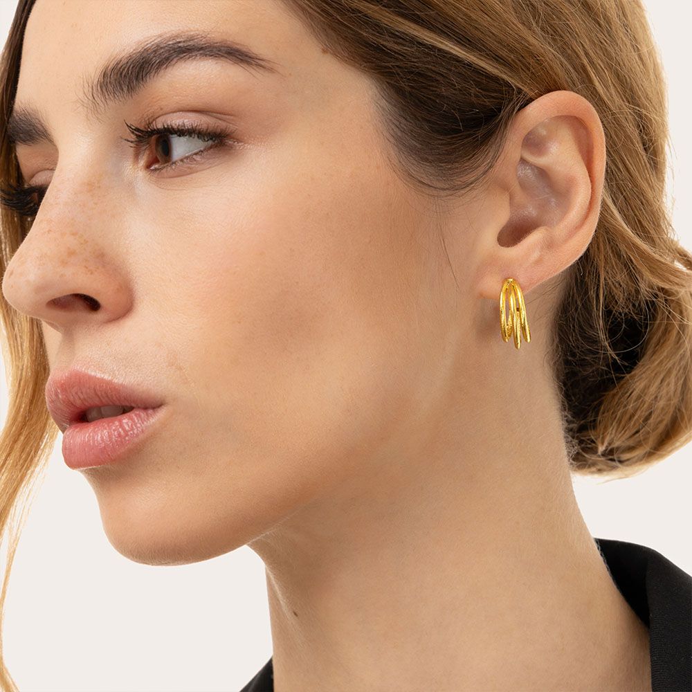Molto più dei classici hoops. Cerchietti in ottone riciclato dal design intrecciato e voluminoso, perfetti per avvolgere e illuminare il viso. Chiusura a farfalla per un indosso sicuro e confortevole. Provali sugli outfit di tutti i giorni, dal denim ai look da ufficio. Diametro 1,8 cm. Nickel tested. Lavorazione artigianale. Gioielli fatti a mano, unici e artigianali, perfetti per tutti i tuoi look o come idea regalo.