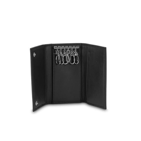 CARATTERISTICHE: Chiusure con bottoni a pressione. Interno: organizzato con 5 ganci, 1 anello, alloggiamento per 3 card e tasca piatta.
