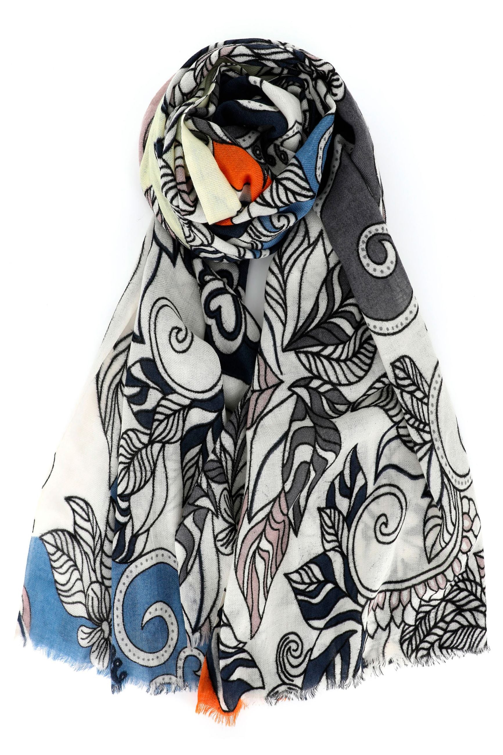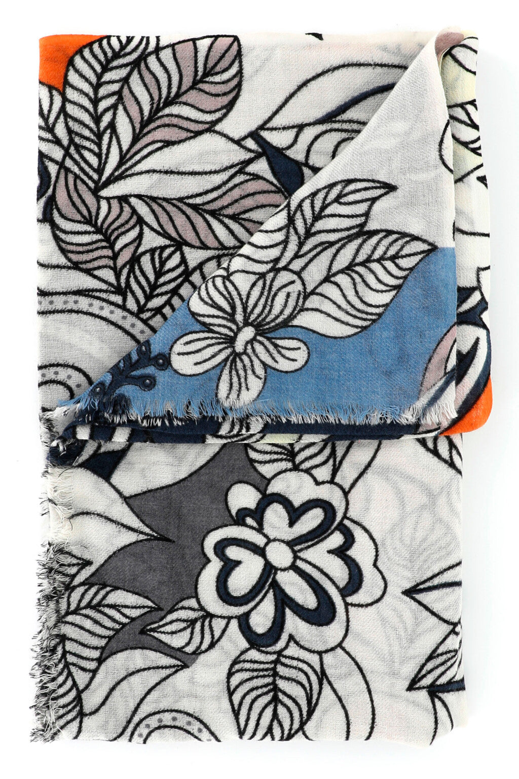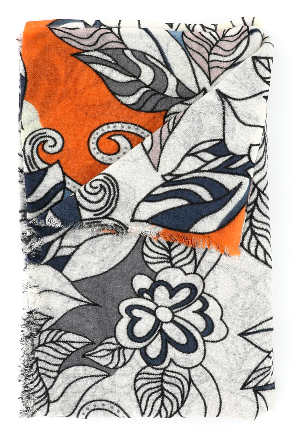 Sciarpa in lana stampata, sfrangiata su due lati.
