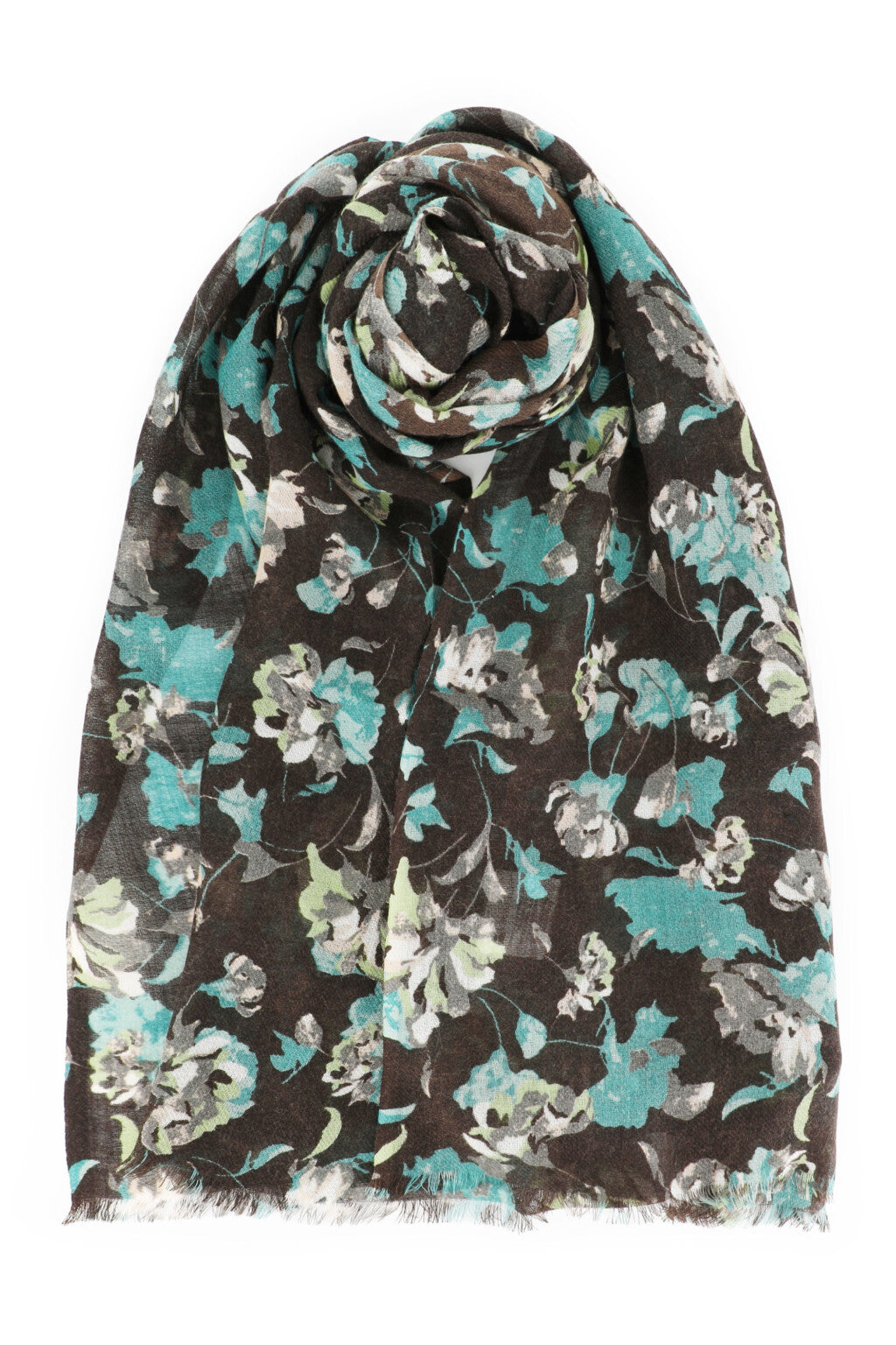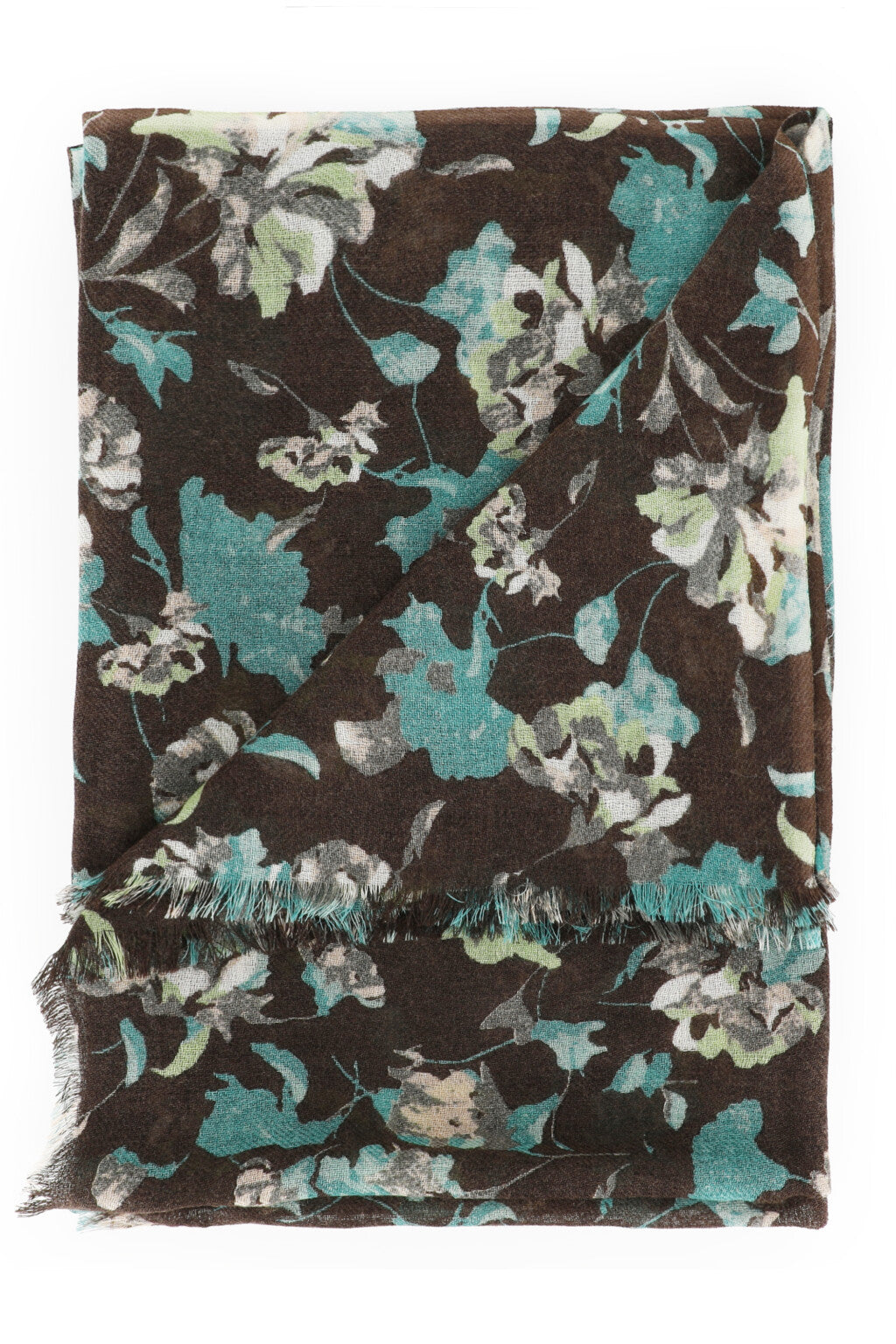 Sciarpa in lana stampata, sfrangiata su due lati.