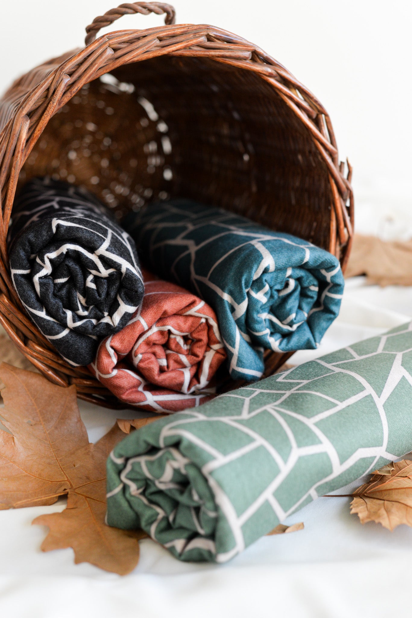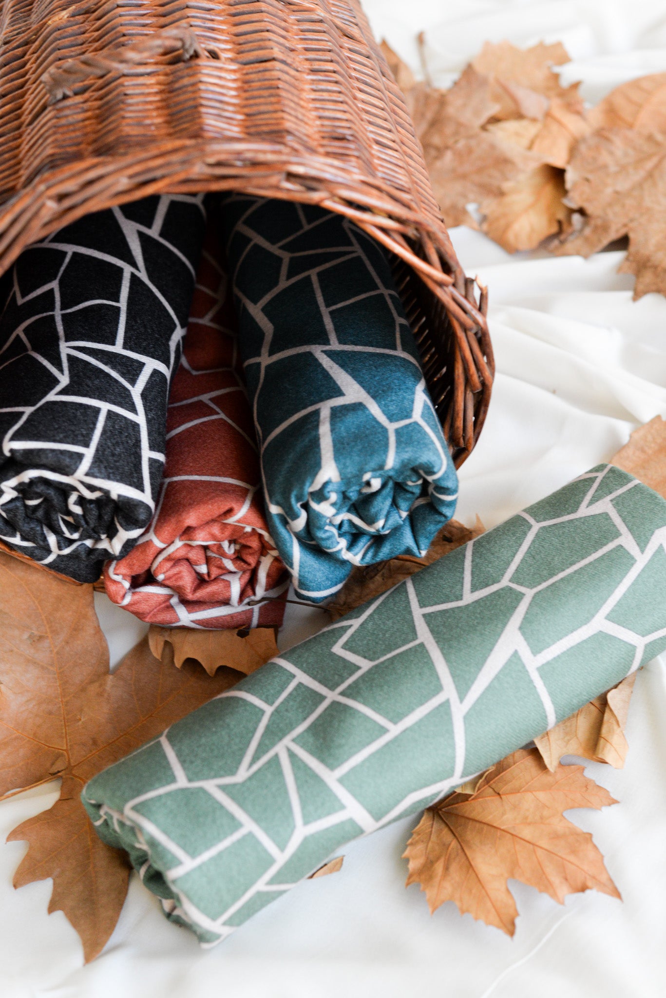 Sciarpa reversibile con stampa geometrica a crepe in colori diversi su un lato e tinta unita sull'altro.