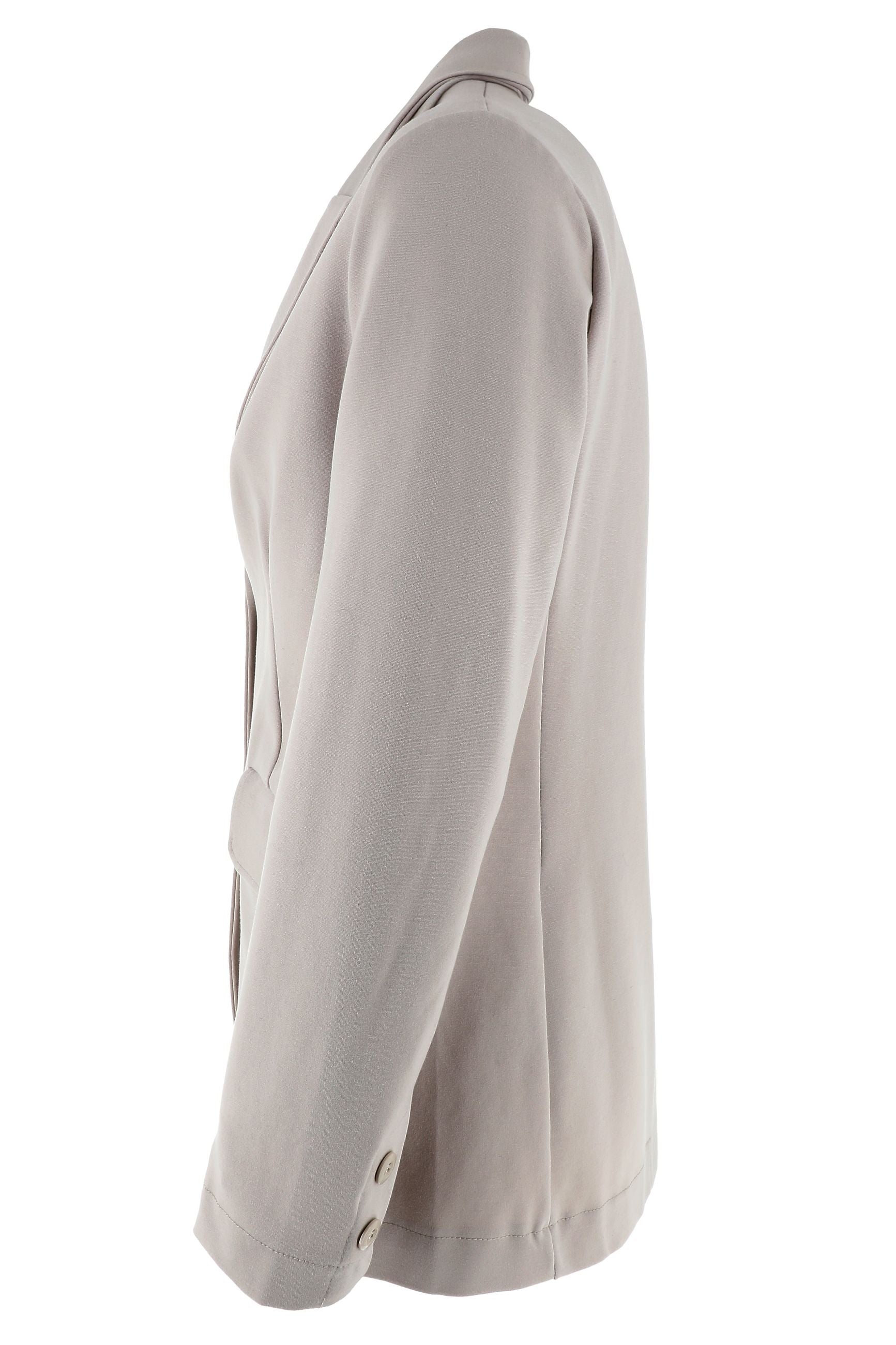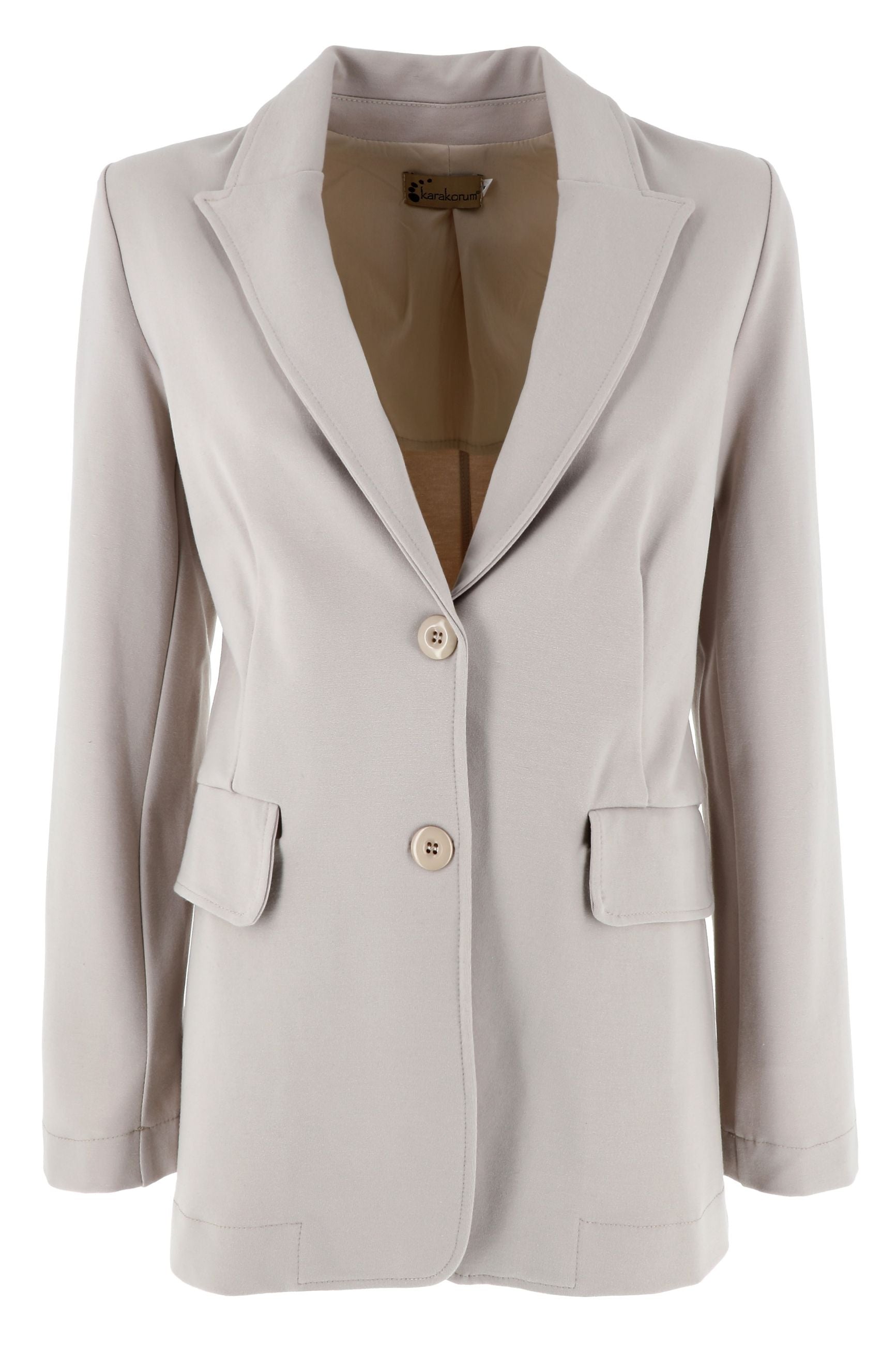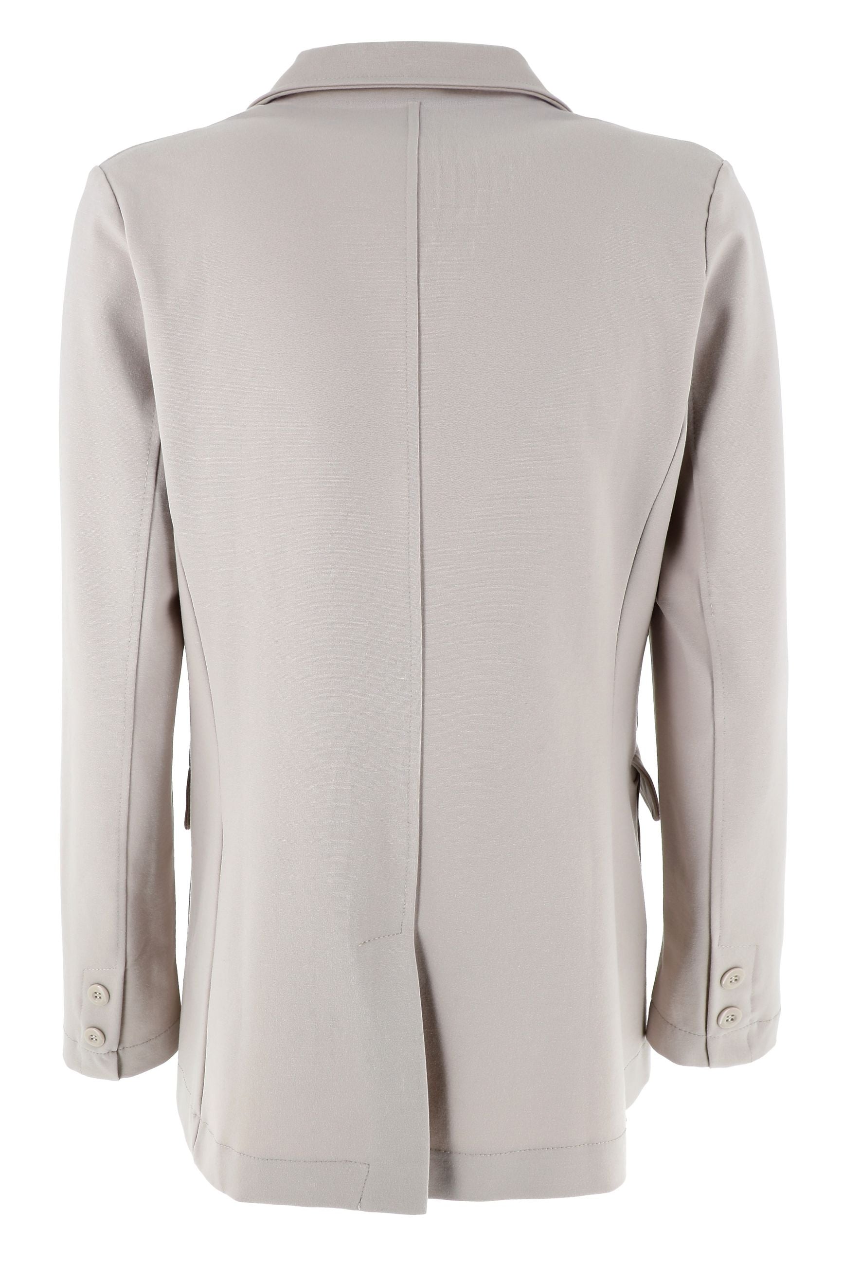 Giacca monopetto in punto milano misto viscosa leggermente lungo. Revers classici e bottoni davanti. Vestibilità morbida, tasche anteriori con pattina e uno spacco dietro. Maniche lunghe e polsino con due bottoncini. Foderata.