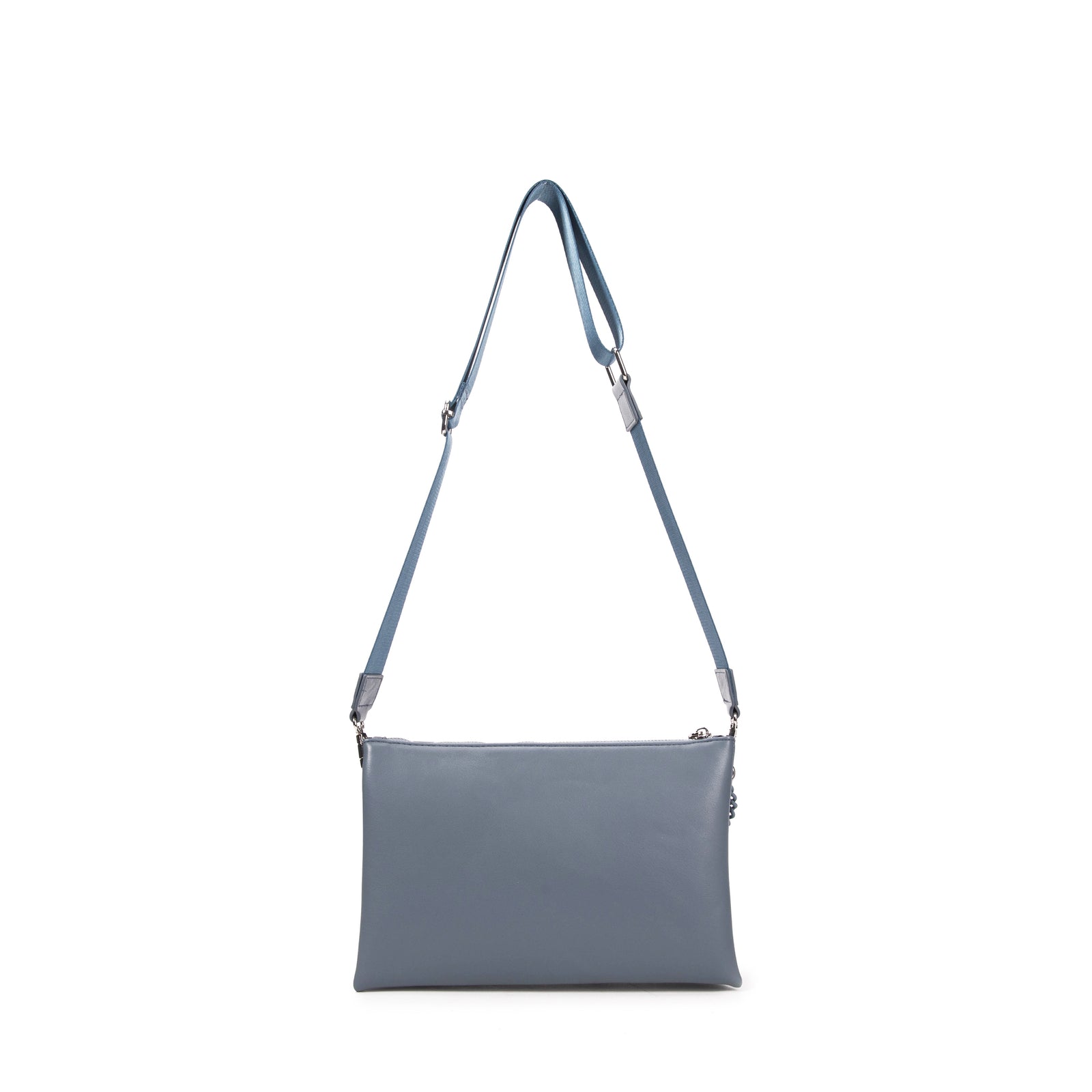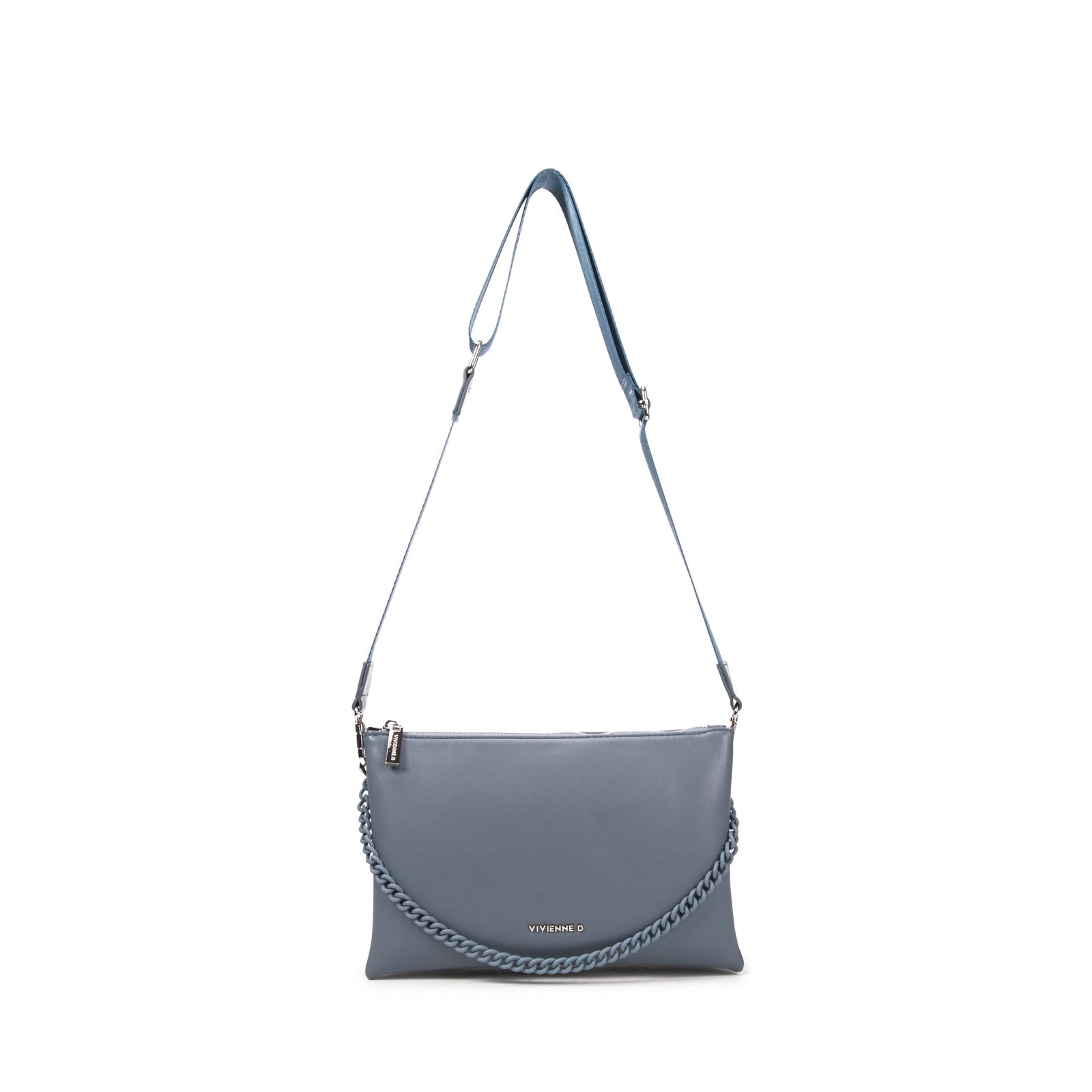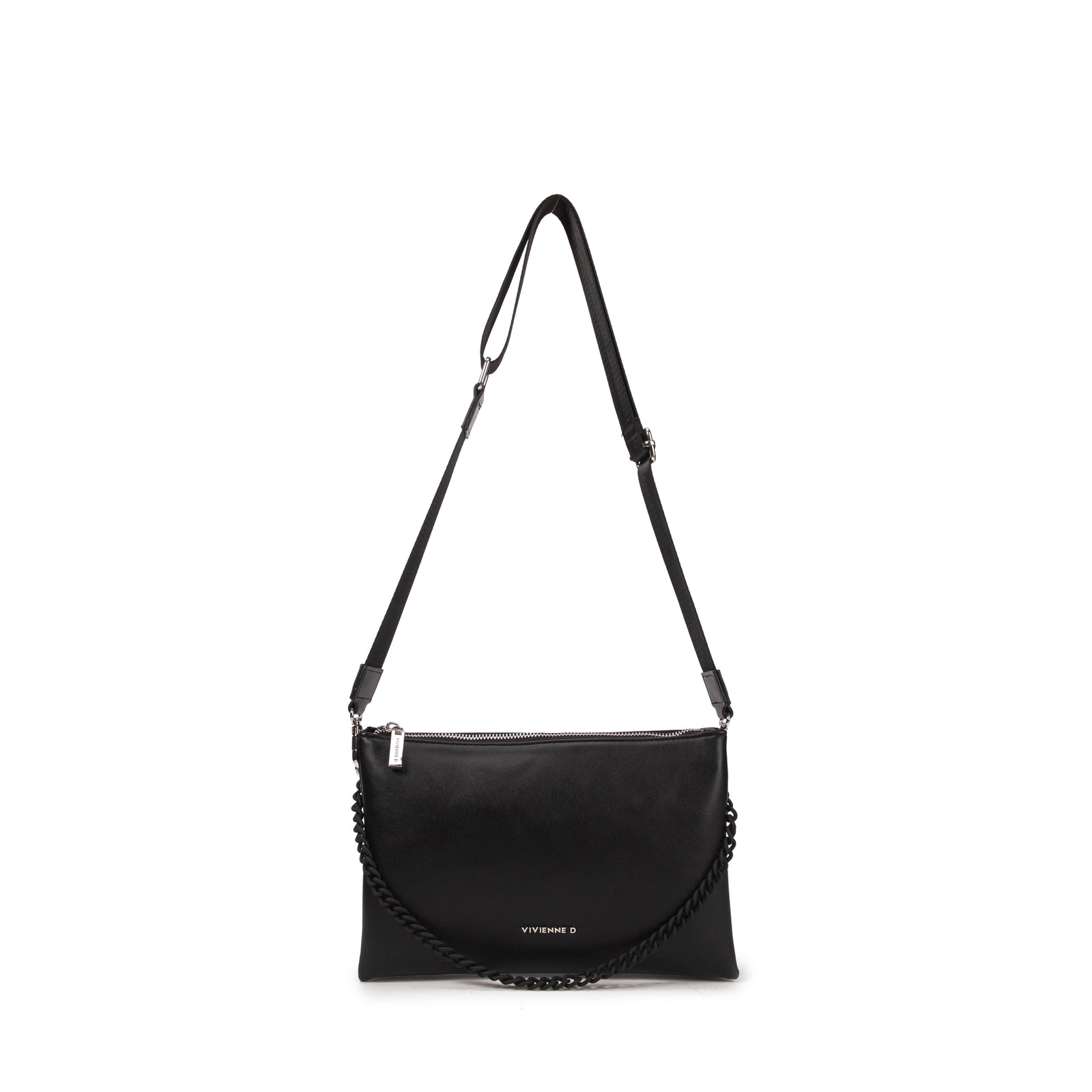 Pochette doppia in ecopelle liscia, con due tasche interne di cui una con zip, logo VIVIENNE D finitura argentata