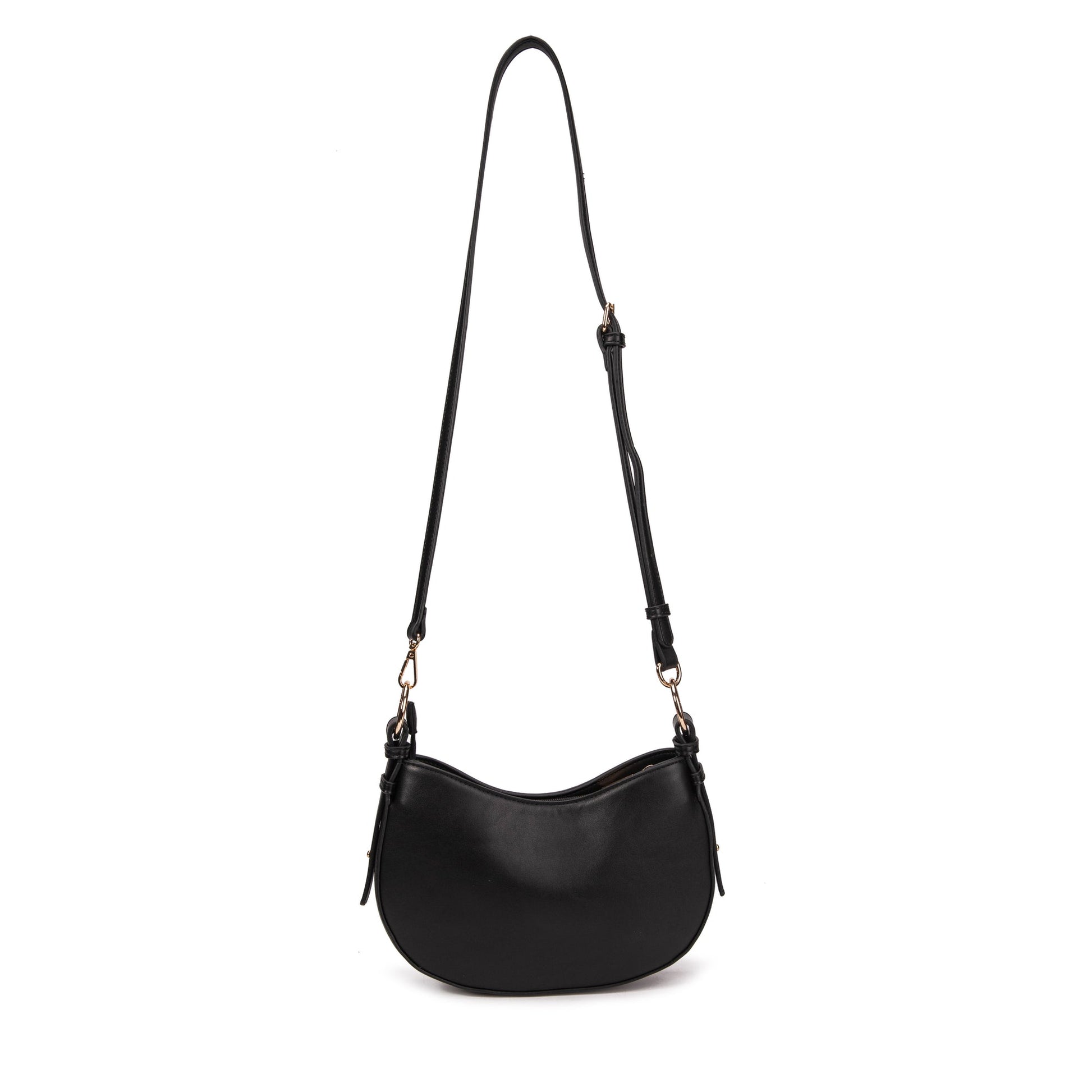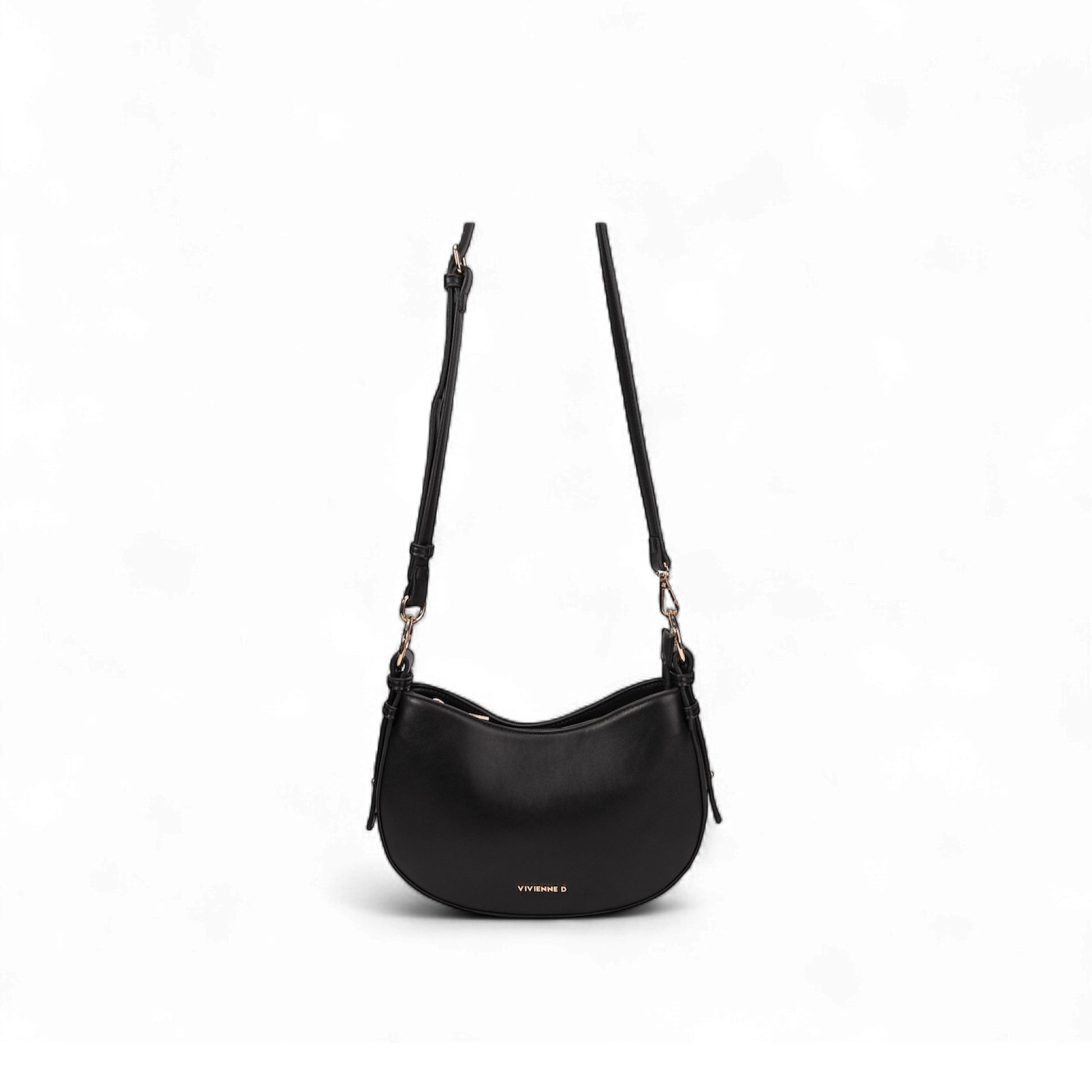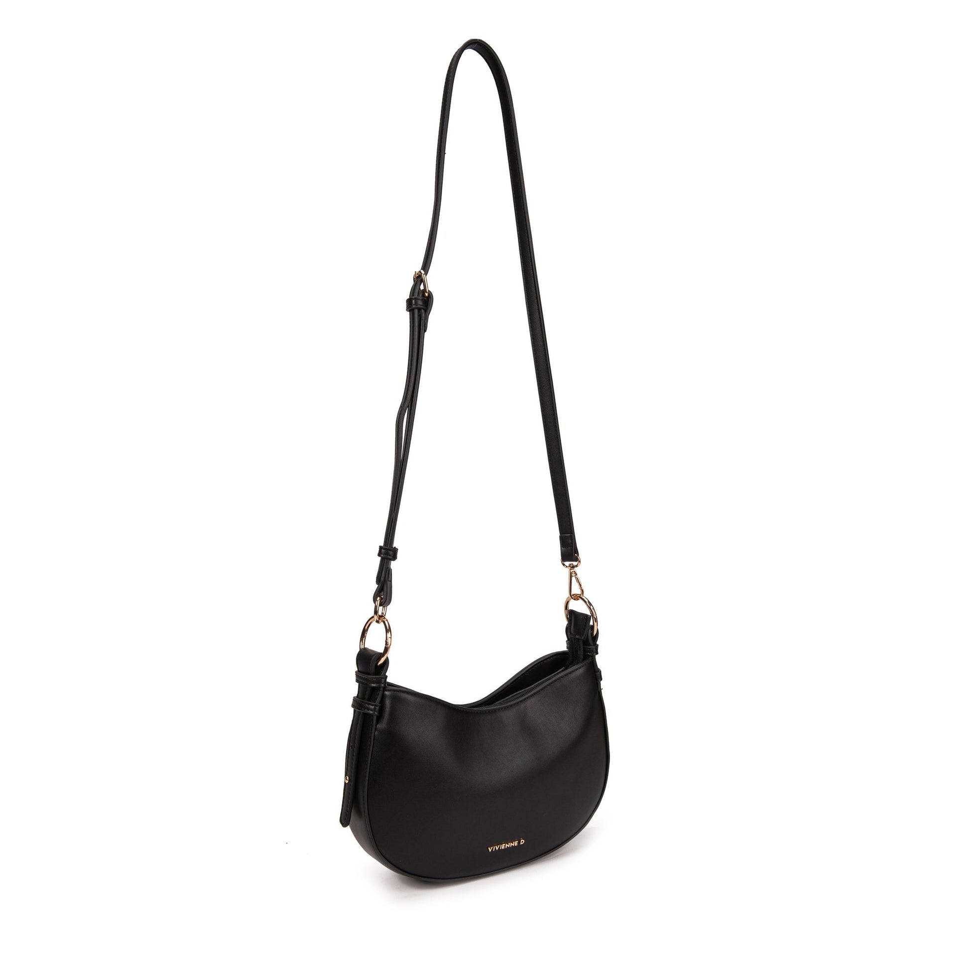 Mini bag in ecopelle liscia, con due tasche interne di cui una con zip, logo VIVIENNE D finitura dorata